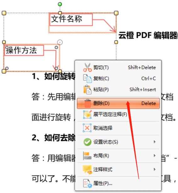 8、接着用鼠标选中所有要删除的注释,右键选择“删除”,或是按“delete”键即可批量删除PDF文件中的注释。